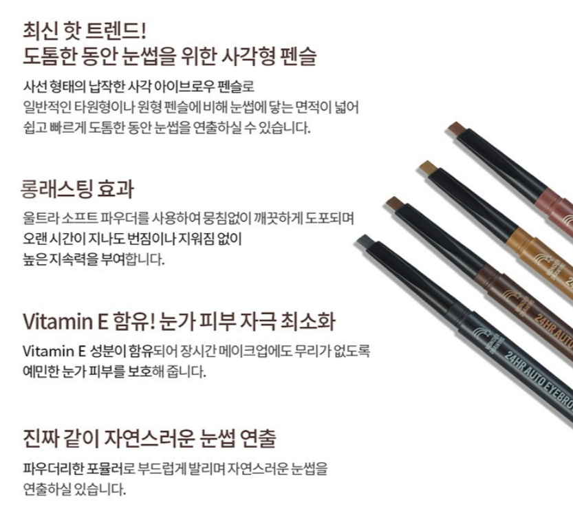 일반적인 타원형이나 원형 펜슬에 비해 눈썹에 닿는 면적이 넓어