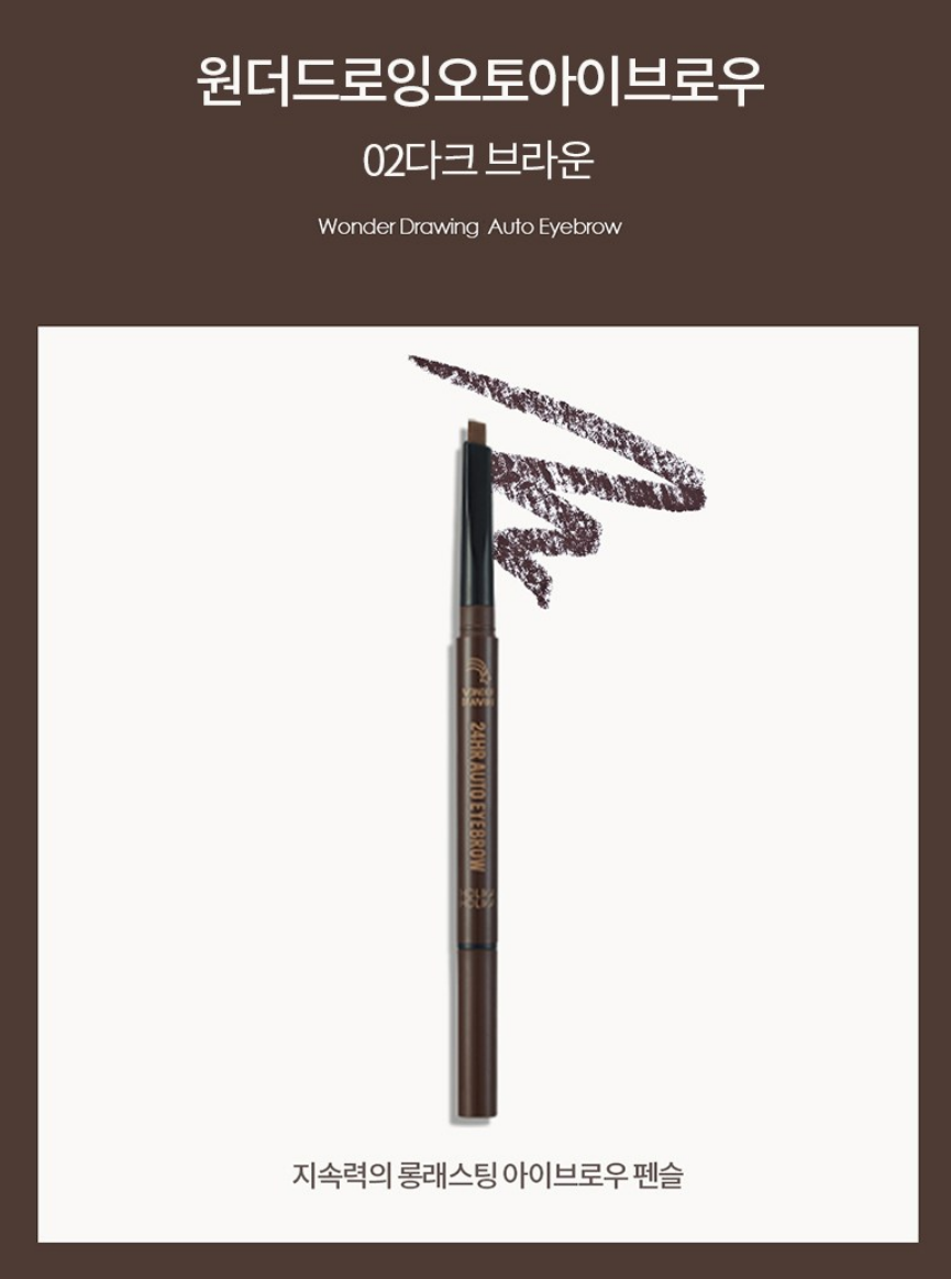 오늘은 이렇게 홀리카홀리카 원더드로잉오토 아이브로우 다크 브라운 컬러를 소개해드렸는데요.