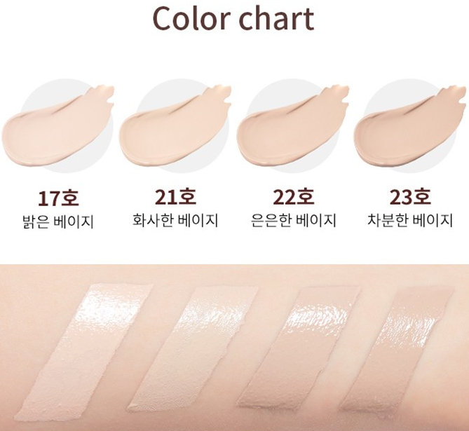 17호부터 23호까지 4가지 컬러로 구성되어 있어 나의 피부톤에 맞게 골라서 사용하시면 돼요.