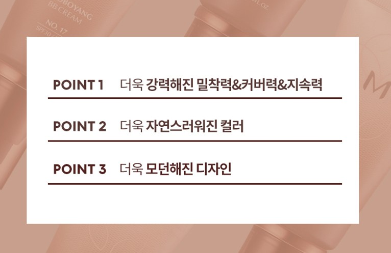 미샤 초보양 비비크림은 강력한 밀착력, 커버력, 지속력 그리고 자연스러운 컬러, 모던한 디자인이 가장 큰 특징이에요.