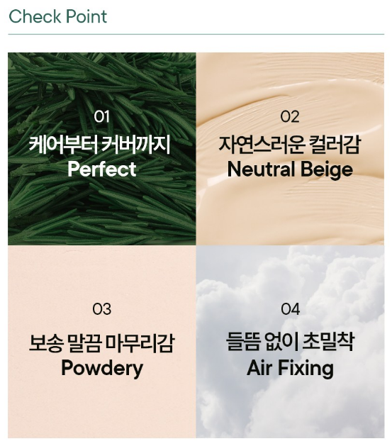 높은 커버력을 위해 처음부터 많은 양을 바르기 보다는 소량씩 펴바르면서 커버가 더 필요한 부분에 덧발라주시는 형태로 메이크업을 해주시는게 더 자연스럽고 좋아요.