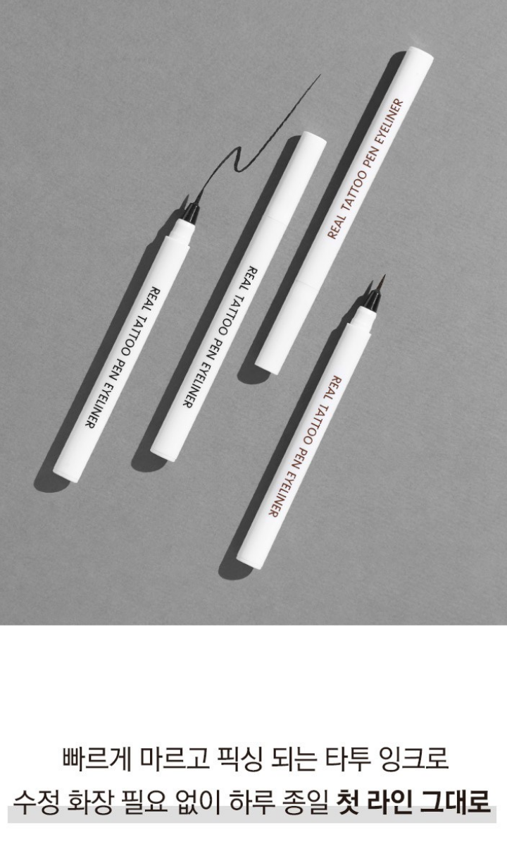 리르 리얼 타투 펜 아이라이너는 물과 오일에 강하고 빠르게 건조되는 고발색 잉크를 사용하여 타투 한 듯 또렷하고 선명한 컬러를 연출해요.