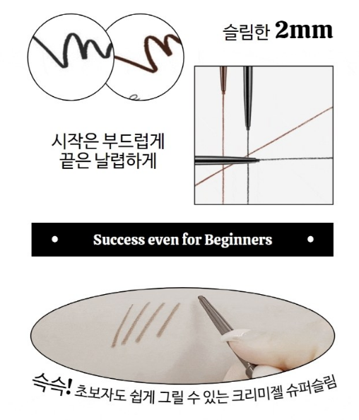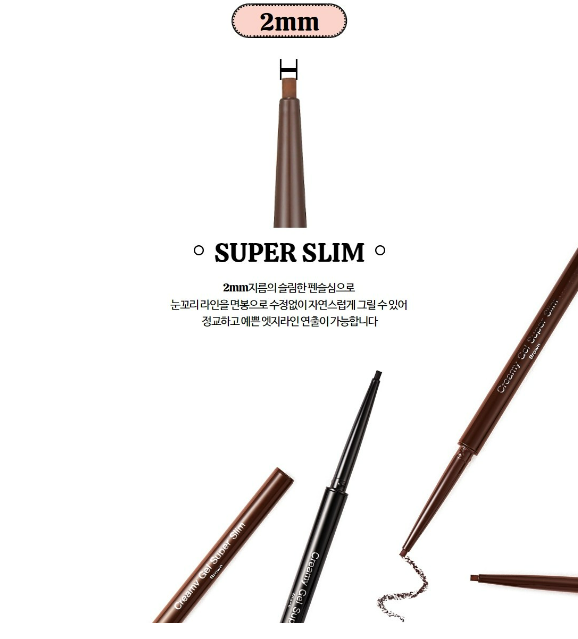 2mm 지름의 슬림한 펜슬심으로 눈꼬리 라인을 면봉으로 수정없이 자연스럽게 그릴 수 있어 정교하고 예쁜 엣지라인 연출이 가능해요.